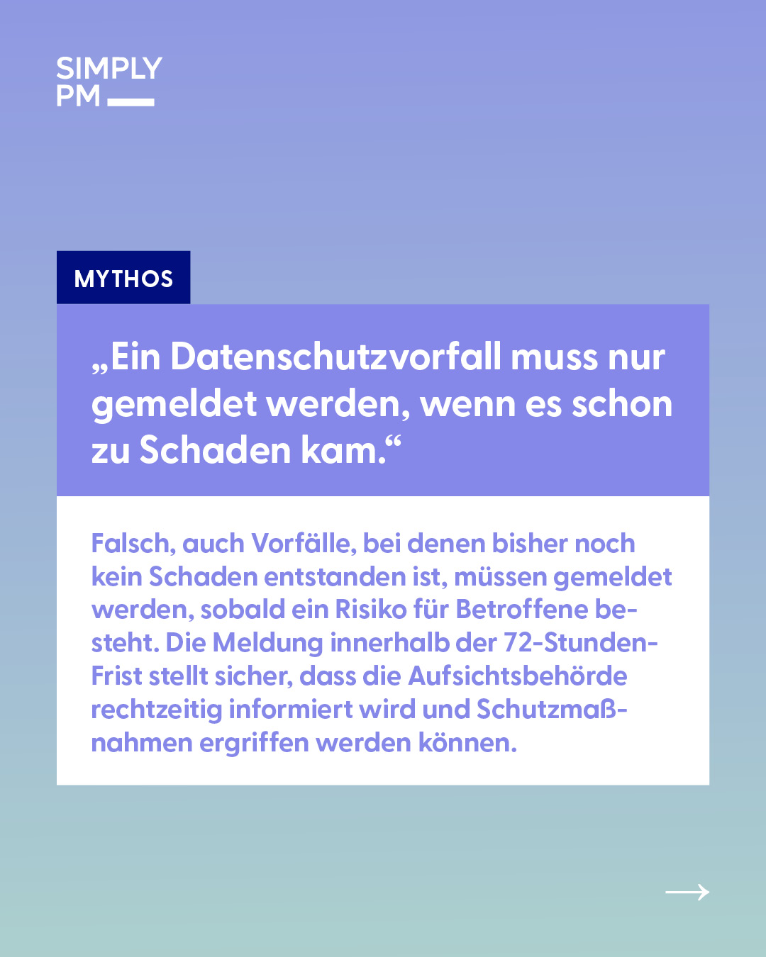 - Mythos: „Ein Datenschutzvorfall muss nur gemeldet werden, wenn bereits ein Schaden entstanden ist“